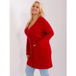 Červený plus size sveter s vreckami.