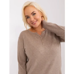 Tmavobéžový plus size sveter s gombíkmi .