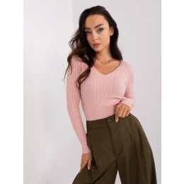 Svetloružový pletený klasický sveter.