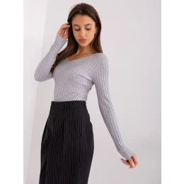 Svetlosivý sveter s klasickým výstrihom do V .