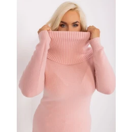 Svetloružový plus size sveter s rebrovanými manžetami .