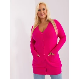 Fuksiový dlhý plus size sveter s výstrihom do V.