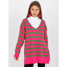 Ružovo-zelený pruhovaný oversize sveter značky OCH BELLA .