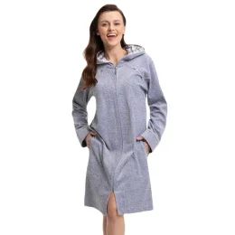 Model je vybavený praktickou kapucňou, ktorá sa bude výborne hodiť po kúpeli a ochráni vlhké vlasy pred chladom. Do funkčných vreciek sa zmestia kľúče, telefón alebo vreckovky a elegantná úprava výstrihu, kapucne a rukávov s károvaným úpletom dodáva charakter a úroveň.