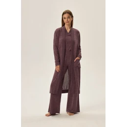 Szlafrok damski długi wykonany z miękkiej dzianiny melanżowej.