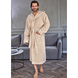 Krátky pánsky župan s kapucňou.
