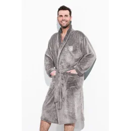Klasický pánsky župan, ktorý je vyrobený z mäkkej a príjemnej látky.