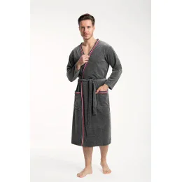 Pánsky župan Luna s dlhými rukávmi, farebnými záhybmi, zapínaním na opasok, vreckami a dĺžkou do polovice lýtok.
