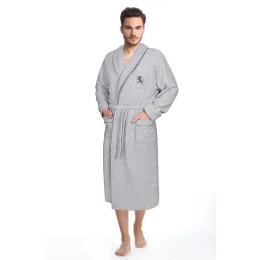 Elegantný pánsky froté župan z kvalitnej bavlny, golier lemovaný kontrastným farebným lemovaním, zaväzovanie v páse.