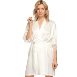 Neobyčajný a veľmi žensky pôsobiaci dámsky župan, ktorý je vyrobený z mäkkej a pružnej saténovej látky.