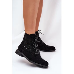 Sznurowane Botki Z Ażurowym Wzorem S.Barski HY51-136 Czarne