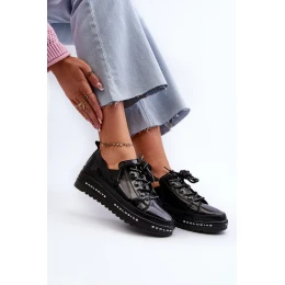 Sznurowane Półbuty Damskie Na Platformie Skóra Naturalna S.Barski LR620 Czarne