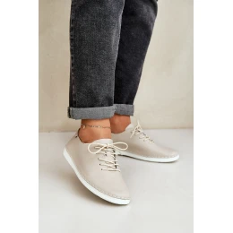 Sznurowane Półbuty Z Naturalnej Skóry D&A LR51-645 Beżowe