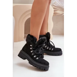 Sznurowane Trapery Damskie Z Futerkiem Czarne Vaminia