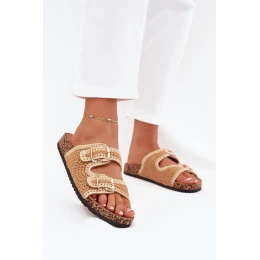 Szydełkowe Klapki Damskie Ze Złotymi Klamrami Camel Fenira