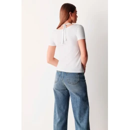 Dámske tričko Cotonella ADC72 je modernou interpretáciou klasiky. Je vyrobené zo zmesi bavlny a elastanu, ktorá je príjemná na dotyk a zaručuje dokonalé prispôsobenie a pohodlné nosenie. Tričko má krátke rukávy a zaujímavo zdobený výstrih s pútavými prestrihmi a zaväzovaním na chrbte. Mierne elastická tkanina zvýrazňuje siluetu a vďaka minimalistickému, ale originálnemu dizajnu sa tento model výborne hodí na každodenné nosenie aj voľnejšie outfity.