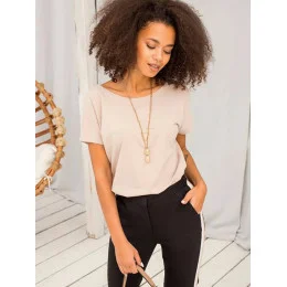 Béžové základné tričko s výstrihom Feel Good (4662-27)