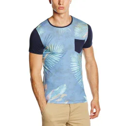 Pánske tričko s krátkym rukávom so zaujímavým vzorom na prednej strane a kontrastným všitým vreckom. Hladký chrbát v tmavomodrej farbe.
