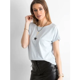 Jasnoniebieski t-shirt Fire. Koszulki damskie basic dawno nie były tak popularne wśród kobiet jak obecnie. Co uczyniło je nagle tak rozchwytywanymi? To bardzo proste. Są bardzo uniwersalne ze względu na gładki i jednokolorowy materiał, dzięki czemu można je stylizować na rozmaite sposoby. Ten t-shirt basic wykonany jest z miękkiej mieszkanki wysokiej jakości materiałów, z czego większość stanowi przyjemna w dotyku i przewiewna bawełna. Dzięki temu jest idealny praktycznie na każdy dzień w roku, ponieważ sprawdzi się doskonale nie tylko latem, ale także w pozostałe miesiące w roku. Modnie wykrojony dekolt z przodu i dodatkowy głęboki z tyłu zapewniają wygodne użytkowanie i niezwykle kobiecy wygląd. Taki t-shirt basic otworzy przed Tobą wiele możliwości stylizacji, dzięki czemu każdy outfit będzie inny. Noś go w towarzystwie sportowych ubrań z naszej pozostałej kolekcji basic albo połącz go z bardziej kobiecymi fasonami, takimi jak rozkloszowane spódnice czy eleganck