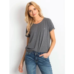 Dámske bavlnené melanžové tričko basic tmavo šedé .