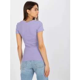 Svetlofialová rebrovaná blúzka s krátkymi rukávmi.