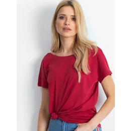 Tričko so zadným výstrihom bordovej farby .