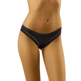 Veľmi ženské nohavičky klasického strihu. Sú vyrobené z vysoko kvalitných tkanín a sú zárukou 100% pohodlia. Hladké, jednofarebné, zdobené elegantnou čipkou. Nadčasový model, ktorý by nemal chýbať vo vašom šatníku!