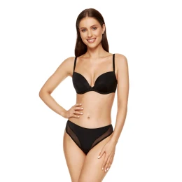 Klasicky strihané tangá v čiernej farbe. Hladká, nenápadná spodná bielizeň vďaka dvojitému elastickému tylovému lemovaniu. Klinové tangá sú vyrobené z bavlny s certifikátom OEKO-TEX, takže sú pohodlné a bezpečné pre intímnu oblasť. Nohavičky sú navrhnuté a ušité v Poľsku.