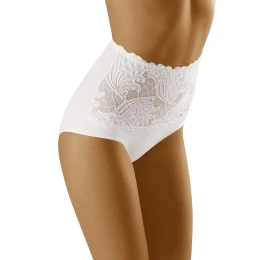 Nohavičky s vysokým pásom mierne tvarujú bruško. Predný diel zdobený čipkou, zadný diel hladký. Funkčné a napriek tomu elegantné.
