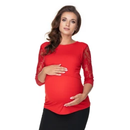 Tehotenská blúzka. Je možné nosiť aj po tehotenstve. Dlhé krajkové rukávy. Zvýšená vrstva na ľahké kŕmenie.