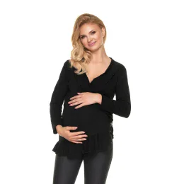 Tehotenská blúzka s volánikmi. Je možné nosiť aj po tehotenstve. S viazaním pre ľahké nastavenie veľkosti.