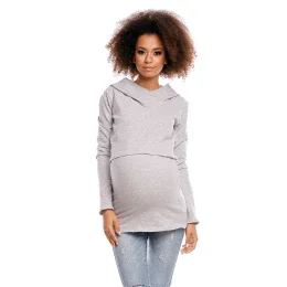 Príjemná na nosenie a príjemná na dotyk tehotenská mikina vyrobená pre budúce mamičky, ktoré majú rady športový štýl a cenia si pohodlie. Skrytá vyvýšená vrstva na dojčenie, miesto pre tehotenské bruško a predĺžená tunika patria k mnohým výhodám tejto mikiny.