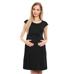 Tehotenské šaty voľného strihu s rozšírenou spodnou časťou. Šaty s ozdobnou mašľou na prednej strane a vreckami.