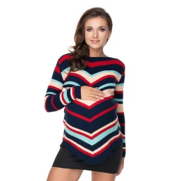 Dlhý zaoblený sveter s dlhými rukávmi. Lodičkový výstrih.