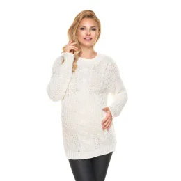Dlhý sveter so stojatým golierom. Pletený motív na prednej strane. Mäkké prešívanie.