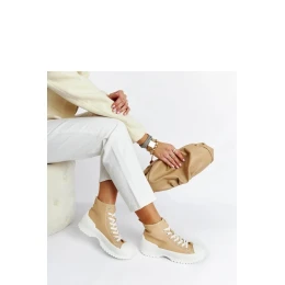 Tenisky Ronchis Beige sú skvelou voľbou na leto pre všetkých milovníkov moderného dizajnu a pohodlia. Ich elegantný šnurovací dizajn umožňuje ideálne prispôsobenie sa nohe, zatiaľ čo okrúhla špička im dodáva na príťažlivosti. Vysoká konštrukcia tenisiek poskytuje nohe stabilitu a oporu, pričom stále poskytuje pocit ľahkosti a pohodlia. Stredný podpätok im dodáva nenápadnú eleganciu, čo znamená, že sa skvele hodia na každodenné nosenie, ako aj na špeciálne udalosti. Vonkajší materiál poskytuje nohám dostatočné odvetrávanie, čo znamená, že sú ideálne na horúce dni. Béžová farba sa dokonale kombinuje s letným oblečením, čím podčiarkuje letnú atmosféru. Tenisky Ronchis sú kombináciou štýlu, elegancie a pohodlia, ktorá určite splní očakávania každého módneho nadšenca.
