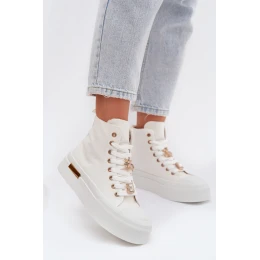 Dámske tenisky na masívnej platforme sú módnou ponukou pre milovníčky osobitého štýlu. Hrubá podrážka dodáva topánkam moderný charakter a zaručuje pohodlné nosenie, zlatý prvok priťahuje pozornosť. Šnurovací model zaručuje dobré prispôsobenie sa nohe a ozdobné pracky dodávajú celku originálny a módny výraz. Tieto tenisky sa dokonale hodia ku každodenným outfitom.