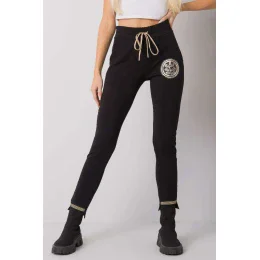 Dámske čierne tepláky s potlačou. Pás s gumičkou a sťahovacou šnúrkou.