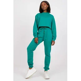 Tepláky s vysokým pásom a nakladanými vreckami na bokoch. Nohavice so sťahovacou šnúrkou v páse.