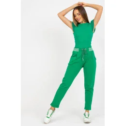 Dámske tepláky s elastickým pásom a viazaním. Nohavice s vysokým pásom a nakladanými vreckami na bokoch.