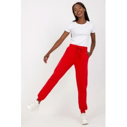 Tepláky s elastickým pásom, vrecká na bokoch. Nohavice s vysokým pásom a šnúrkou v páse.