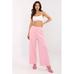 Pohodlné a štýlové tepláky s ležérnym charakterom sú ideálnou voľbou na každodenný život aj do práce. Sú vyrobené z mäkkej zmesi viskózy a elastanu, poskytujú pohodlie a skvele priliehajú k telu. V páse je vložená elastická guma, ktorá zabezpečuje pohodlie a stabilitu, a vysoký pás zvýrazňuje pás a opticky predlžuje nohy. Široké nohavice dodávajú nohaviciam moderný, uvoľnený charakter a zabezpečujú úplnú voľnosť pohybu. Vďaka minimalistickému, hladkému vzoru a klasickému strihu sú nohavice ideálne na každodenné oblečenie aj elegantnejšie kombinácie. Predstavujú ideálnu kombináciu pohodlia a módneho vzhľadu.