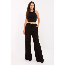 Ležérne nohavice v športovom štýle, ideálne na každý deň. Vyrobené sú z mäkkej zmesi viskózy, polyesteru a elastanu a poskytujú pohodlie, priedušnosť a ľahkú elasticitu materiálu. Hladká štruktúra tkaniny im dodáva univerzálny charakter, vďaka čomu sa dajú ľahko kombinovať s mnohými štýlmi. Model má vysoký pás a široké nohavice, ktoré sa pri pohybe krásne usadia a zvýraznia voľný strih. V páse je praktická šnúrka na prispôsobenie sa postave a bočné všité vrecká dodávajú funkčnosť. Moderné a pohodlné, skvelá voľba na každodenný, ležérny outfit.
