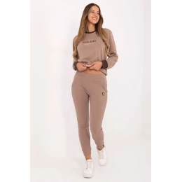 Voľné tepláky z mäkkej bavlny s prídavkom elastanu, ktoré poskytujú pohodlie a voľnosť pohybu na každý deň. Hladký materiál s pruhovanou štruktúrou im dodáva moderný charakter a stredne vysoký pás zaručuje pohodlné nosenie. Nohavice sa zužujú smerom dole a sú zakončené elastickými manžetami, čím vytvárajú športovú líniu a skvele sedia na postave. Model nemá zapínanie, vďaka čomu je mimoriadne praktický a pohodlný. Ďalšou výhodou sú bočné vrecká, ideálne na odkladanie drobností. Univerzálne, klasické tepláky, skvelá voľba na každodenný ležérny outfit.