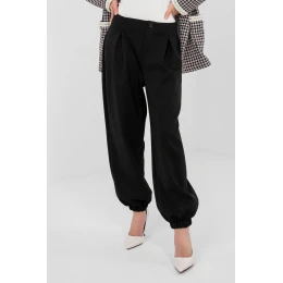 Ležérne tepláky typu jogger spájajú pohodlie a štýlový vzhľad, ideálne na každý deň a do pracovného prostredia v uvoľnenom štýle. Sú vyrobené z mäkkej a elastickej zmesi viskózy s prídavkom elastanu, poskytujú pohodlie pri nosení a voľnosť pohybu. Model s hladkým vzorom a ozdobnými záložkami na prednej strane, ktoré dodávajú nohaviciam elegantný charakter. Zadný elastický pás zabezpečuje dobre padnúci strih. Nohavice zakončené manžetami zvýrazňujú jogger strih a zabezpečujú pohodlie pri nosení. Nohavice nemajú zapínanie, bočné vrecká zvyšujú ich funkčnosť. Celkový vzhľad dotvára ozdobný gombík, ktorý je štýlovým detailom. Ideálne na každodenné štylizovanie s mikinou, svetrom alebo tričkom.