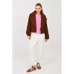 Volnější kalhoty ve stylu dresových joggů jsou kombinací pohodlí a stylového vzhledu, ideální na každý den i do práce v uvolněném stylu. Vyrobené z měkké a elastické směsi viskózy s přídavkem elastanu zajistí pohodlné nošení a volnost pohybu. Model s hladkým vzorem a ozdobnými záložkami vpředu, které dodávají kalhotám elegantní charakter. V zadní části je vsazena elastická guma pro dobré přizpůsobení postavě. Nohavice jsou ukončeny manžetami, které zdůrazňují střih joggů a zajišťují pohodlné nošení. Kalhoty nemají zapínání a boční vložené kapsy zvyšují jejich funkčnost. Celkový vzhled dotváří ozdobný knoflík, který představuje stylový detail. Ideální pro každodenní stylizace s mikinou, svetrem nebo košilí.