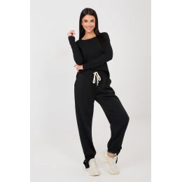Voľné tepláky typu jogger sú ideálnou ponukou na každý deň, ktorá spája pohodlie s moderným vzhľadom. Sú vyrobené z mäkkej a elastickej zmesi viskózy, bavlny a elastanu a zaručujú pohodlie pri nosení a voľnosť pohybu. Model s hladkým vzorom a vysokým pásom perfektne sedí a šnúrka v páse umožňuje individuálne nastavenie. Nohavice zakončené elastickými manžetami a dodatočným šnurovaním v spodnej časti zdôrazňujú športový charakter nohavíc a umožňujú nastavenie šírky. Praktické bočné vrecká zvyšujú funkčnosť modelu. Ideálne na každodenné nosenie s mikinou, tričkom alebo svetrom.
