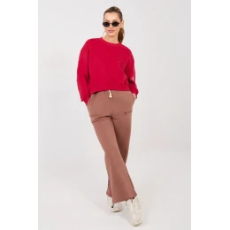 Nohavice s rovnými nohavicami sú pohodlnou a štýlovou ponukou v ležérnom dizajne. Skvele sa hodia na každý deň, na oddych, prechádzky aj mestský štýl. Rovné nohavice im dodávajú moderný, minimalistický charakter a zabezpečujú voľnosť pohybu. Model je vyrobený z kvalitnej zmesi bavlny a polyesteru, ktorá zaručuje pohodlie pri nosení, mäkkosť a odolnosť materiálu. Vysoký pás krásne zvýrazňuje pás a zabezpečuje pohodlné prispôsobenie sa postave. Pás má praktické zapínanie na šnúrku, ktoré umožňuje individuálne nastavenie. Nohavice majú bočné vrecká, ktoré zvyšujú funkčnosť modelu. Hladký vzor zdôrazňuje ich univerzálny štýl, zatiaľ čo ozdobná výšivka na ľavej nohavici je jemným, módnym akcentom, ktorý celku dodáva osobitý charakter.