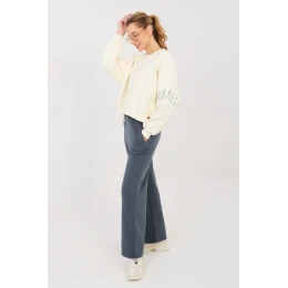 Nohavice s rovnými nohavicami majú pohodlný a štýlový dizajn v ležérnom štýle. Skvele sa hodia na každý deň, či už na relax, prechádzku alebo do mestského štýlu. Rovné nohavice im dodávajú moderný, minimalistický charakter a zabezpečujú voľnosť pohybu. Model je vyrobený z kvalitnej zmesi bavlny a polyesteru, ktorá zaručuje pohodlie pri nosení, mäkkosť a odolnosť materiálu. Vysoký pás krásne zvýrazňuje pás a zabezpečuje pohodlné prispôsobenie sa postave. V páse je praktická šnúrka, ktorá umožňuje individuálne nastavenie. Nohavice majú bočné vrecká, ktoré zvyšujú funkčnosť modelu. Hladký vzor podčiarkuje ich univerzálny štýl, zatiaľ čo ozdobný vyšívaný motív na ľavej nohavici dodáva jemný, módny akcent, ktorý celku dodáva osobitý charakter.