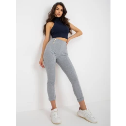Šedé dámske tepláky s ozdobnými gombíkmi .